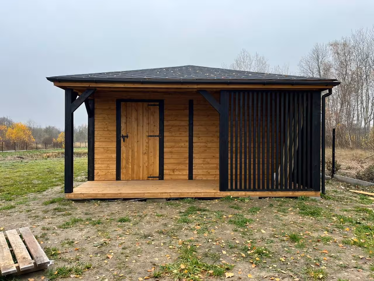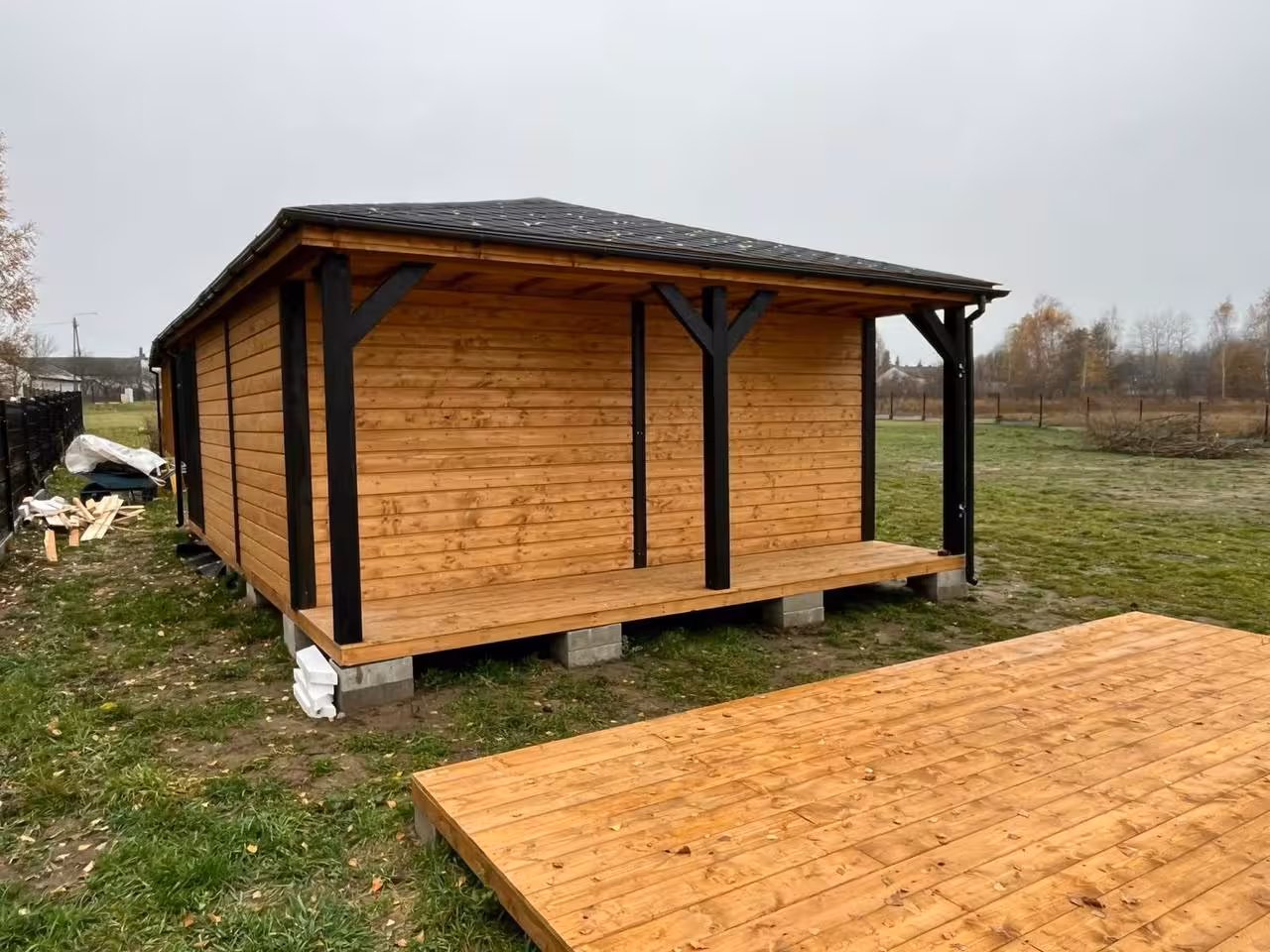 Altanka+Domek+Drewutnia 7x5 (3w1) Altana 1,5x5 Domek 4,5x5 Drewutnia 1x5